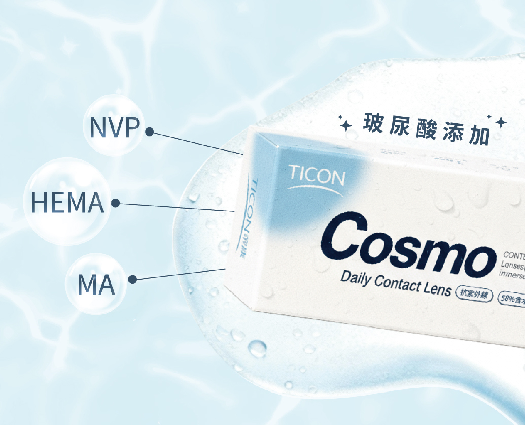 NVP 含水配方結合恆定含水技術,緩衝液添加高分子玻尿酸,鏡片展現清新水感!